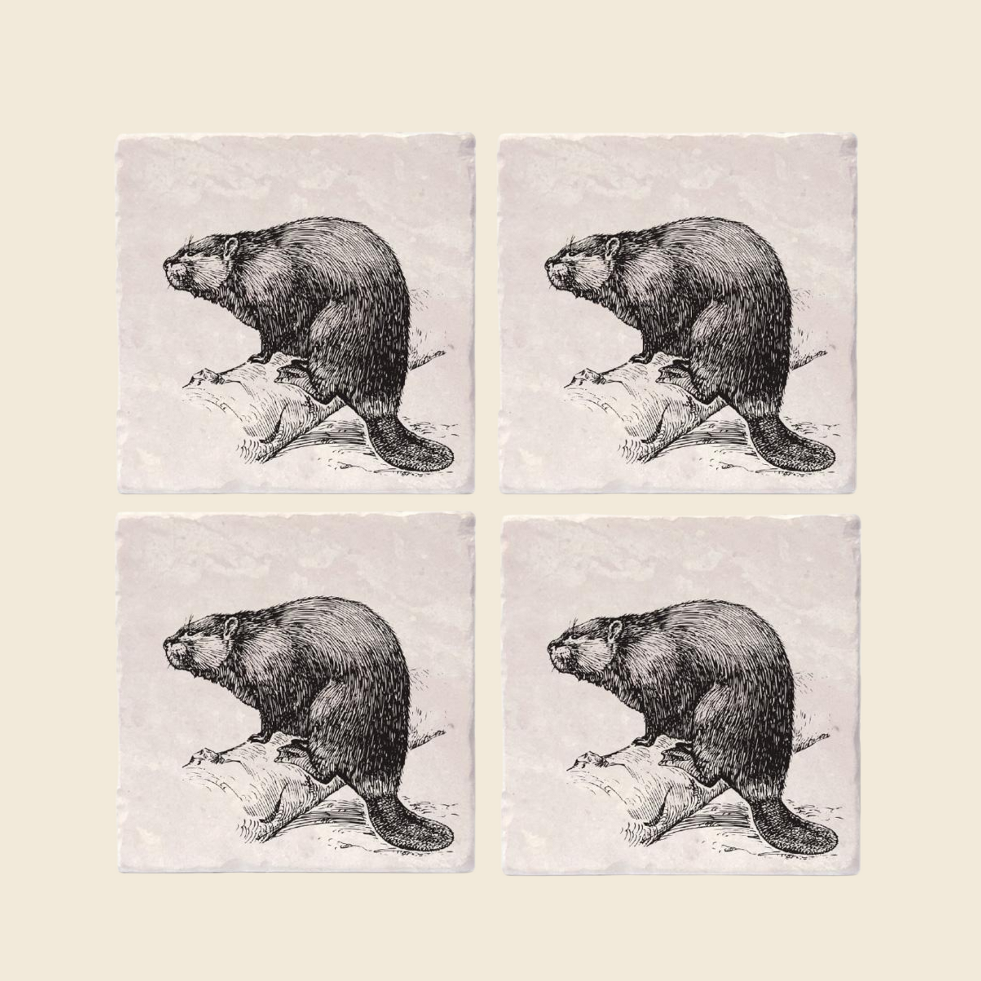 Vintage Beaver Coasters (Set of 4)