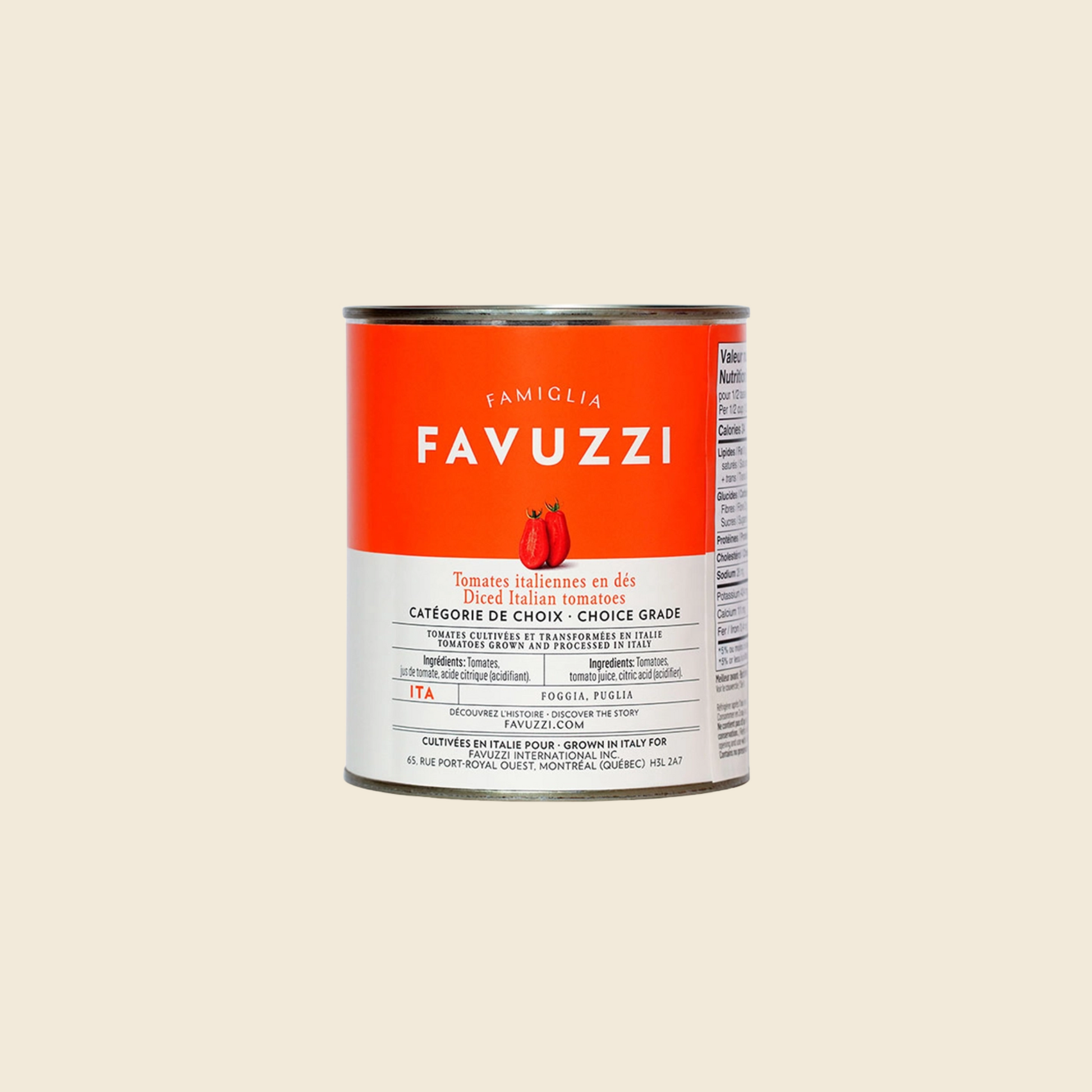 - Our diced Italian tomatoes are packed in a velvety coulis (twice as thick as commercial canned tomato brands). They have firm flesh and moderate acidity to let their delicious taste fully shine.