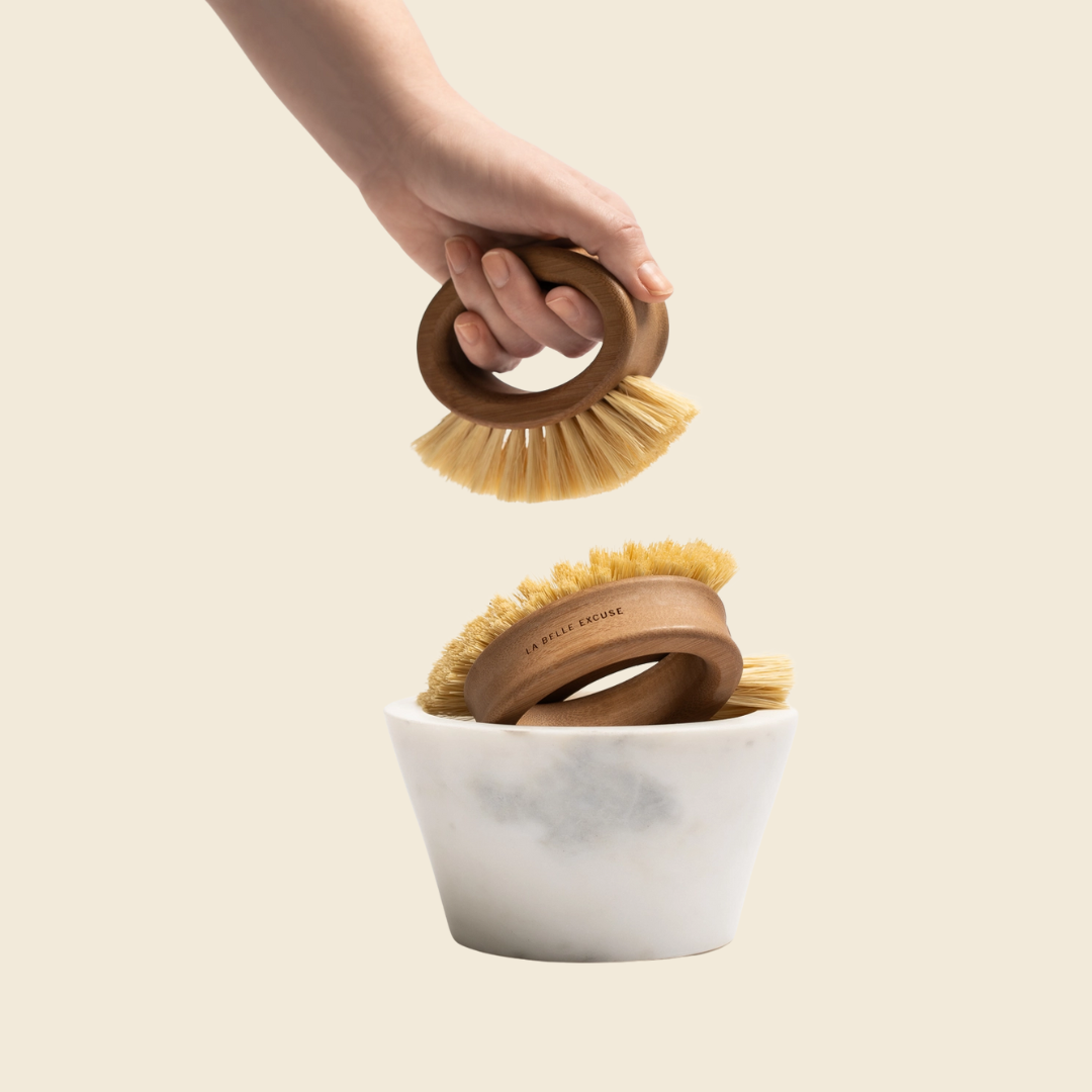 - This brush is also highly useful for fruits and vegetables! The bristles are sturdy enough to clean root vegetables, yet soft enough not to damage more delicate produce when applying less pressure. Hang up the brush easily with the handle for quick drying.