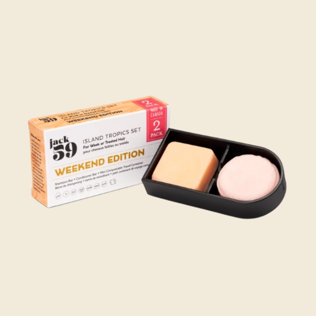 - This convenient travel kit includes everything you need for a refreshing and eco-friendly shower on the go. Packed with all your favourite Jack59 products, it ensures a luxurious hair care experience wherever your adventures take you.