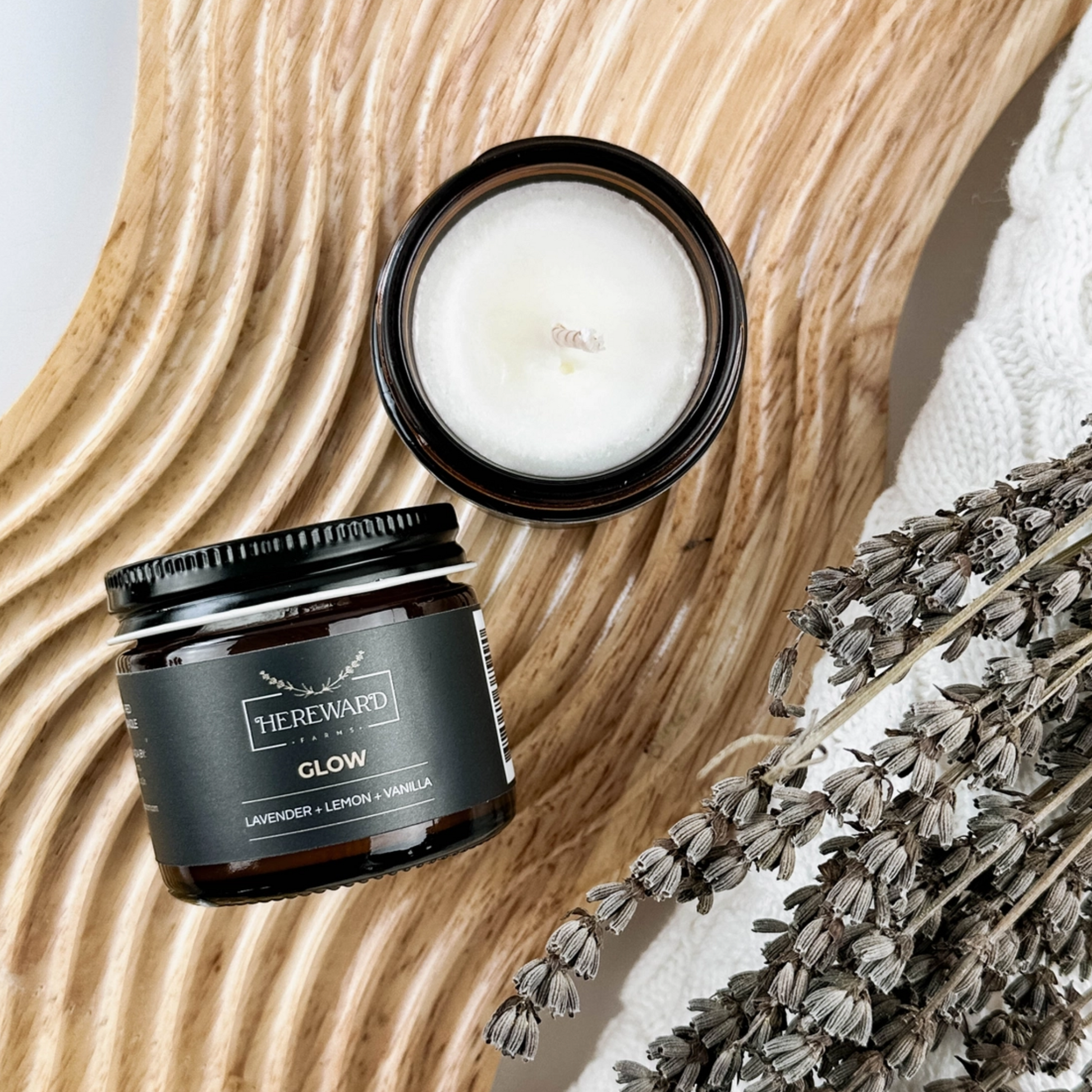 - Hereward Farms’ Signature Blend Soy Candles offer a clean, eco-friendly burn with a soothing lavender base blended with warm and refreshing notes for a luxurious aromatic experience.
